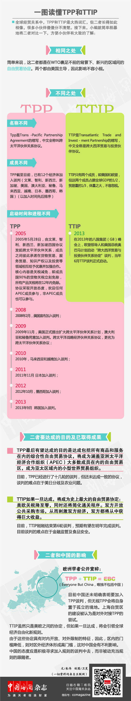 虽然是段子,但其实还是有一定道理的。美国之所以积极推动TPP还有TTIP,根本目的就是要重塑世界经贸规则。那他为什么要另搞一套呢?这其中的中国因素不可回避。因为,随着中国竞争力的增强,美国已经无法在现有规则架构上保持对中国的绝对优势,如果依然行使目前的游戏规则,对美国维持自己的霸主地位显然是不利的。有人说,TPP的本质,就是美国为了保持对中国的经济优势而组织的一个新游戏规则的组织。所以,TPP不仅与贸易有关,也与地缘政治相关。事实上,在TPP协议达成一致后,奥巴马就明确说了,美国不允许中国等国家来书写全球经济的规则。